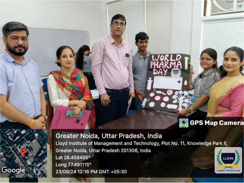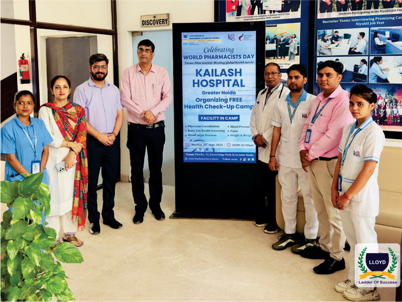 The World Pharmacists Day & Pharmacovigilance week was celebrated at Lloyd Institute of Management and Technology (Pharm.), Knowledge Park-2, Greater Noida, It provides a vital platform to recognize the indispensable role of pharmacists in healthcare. In honor of this occasion, Lloyd Institute of Management and Technology (Pharm.) in association with Kailash Hospital ,Greater Noida organized a Health Check-up Camp in the campus under the theme “Pharmacists: Meeting global health needs” highlighting the invaluable contribution of pharmacists to the healthcare ecosystem.